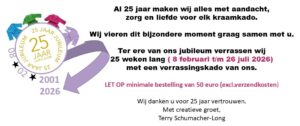 Daarnaast leveren wij originele gelegenheidskado’s zoals aankondiging zwangerschap, verjaardags of afscheidskado’s , kadokratten en schalen.