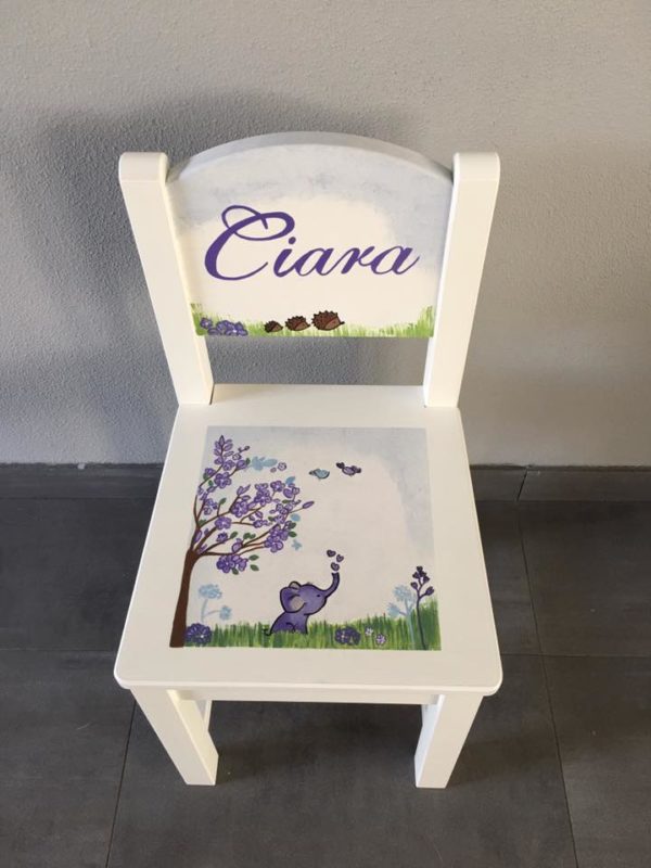 Stoeltje handbeschilderd met de afbeelding van het geboortekaartje